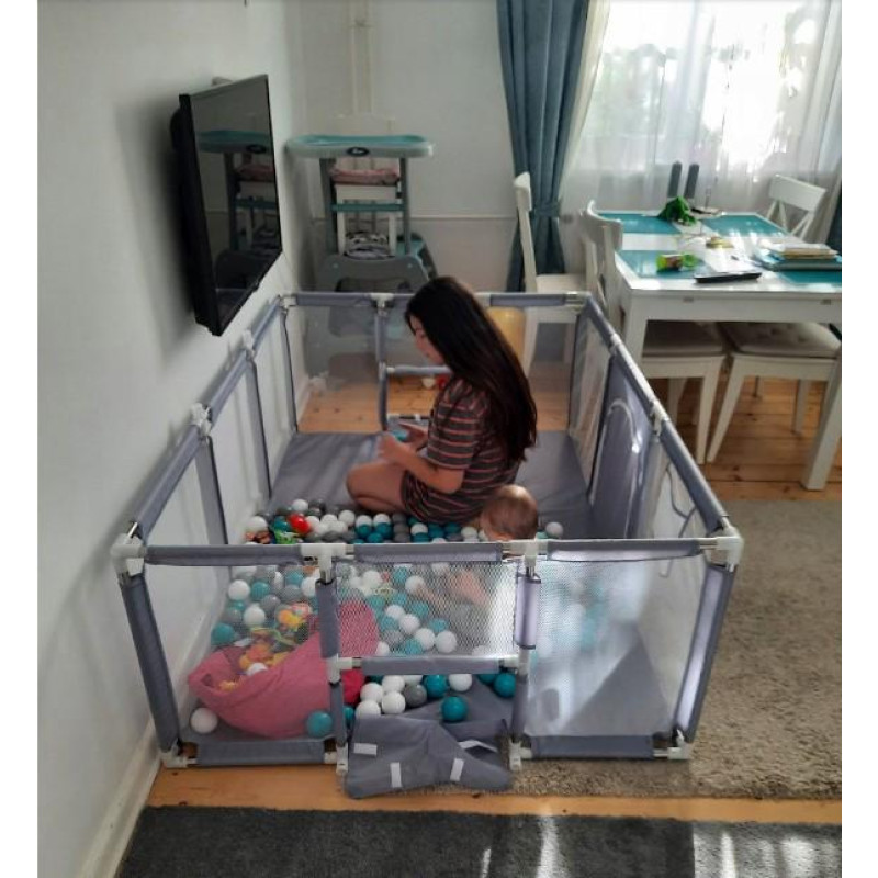 Простота та функціональність: Манеж легко складається та розкладається, займаючи мінімум місця у складеному вигляді. Це робить його ідеальним рішенням для використання у будь-якому будинку, дозволяючи швидко організувати безпечний ігровий простір.