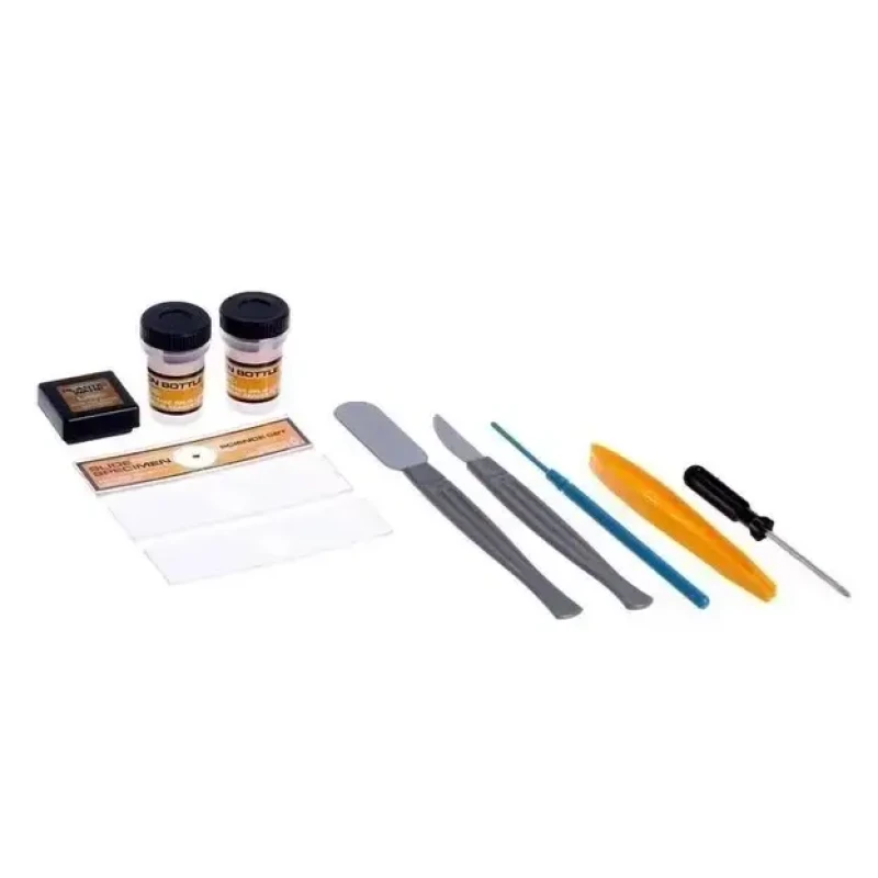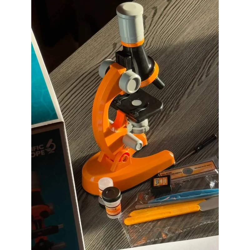 Комплектація: мікроскоп, предметне скло, пластикова ємність, пінцет, пробірки, наклейки.