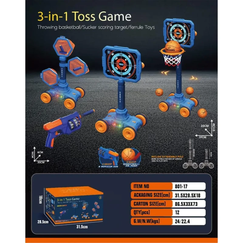 Дитячий тир 3в1 (801-17) баскетбол + пістолет + мобільна мішень