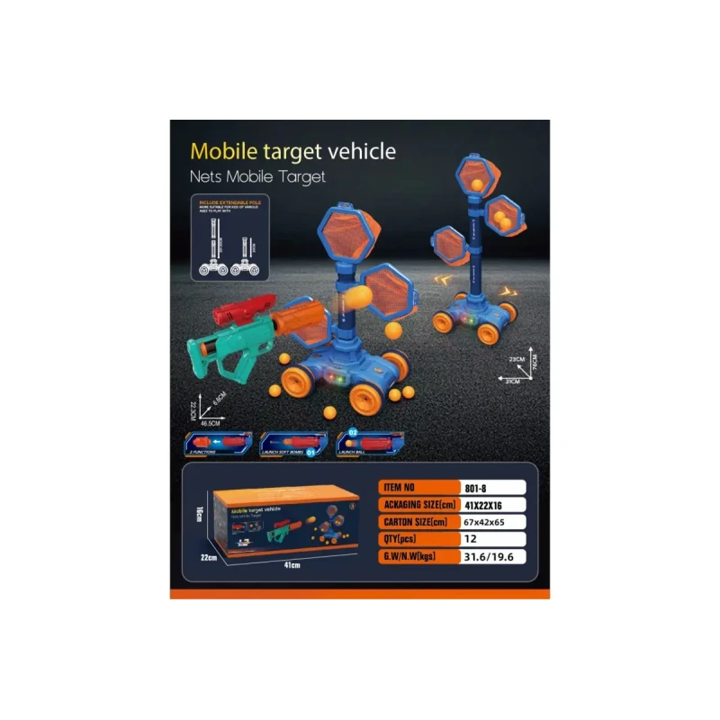 Подаруйте дитині море емоцій та захоплюючих ігор з дитячим тиром 801-8! Цей набір включає безпечний пістолет і розумну мобільну мішень, яка самостійно рухається, створюючи ефект справжнього тиру. Гра розвиває влучність, концентрацію та координацію рухів, а також відмінно підходить для веселих змагань із друзями чи батьками.