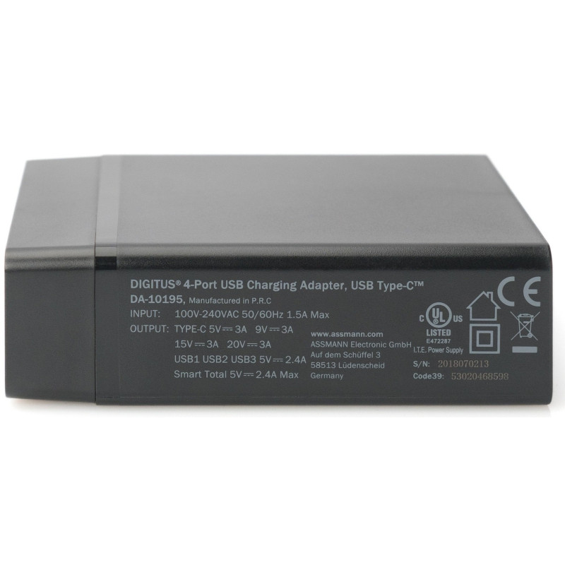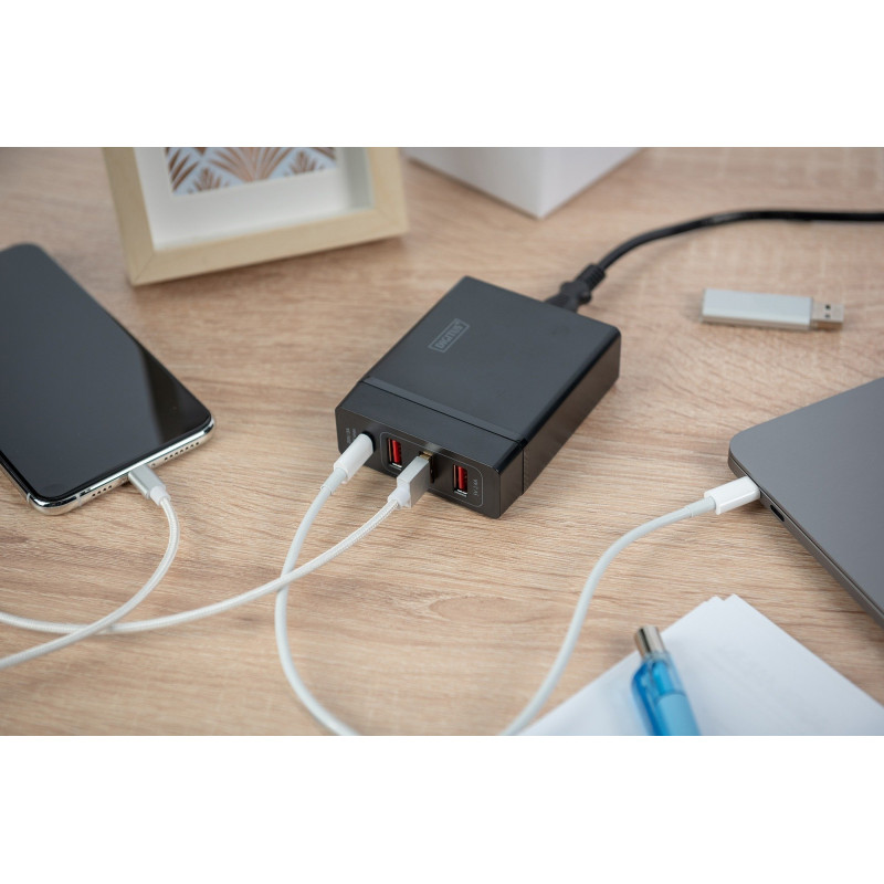 Зарядний пристрій DIGITUS DA-10195 є універсальним рішенням для одночасного живлення кількох пристроїв. Він оснащений одним портом USB-C із підтримкою Power Delivery та трьома портами USB-A. Загальна вихідна потужність до 72 Вт дозволяє заряджати ноутбуки, планшети та смартфони з одного джерела. Компактні розміри роблять пристрій зручним для розміщення на робочому столі або біля дорожньої сумки.