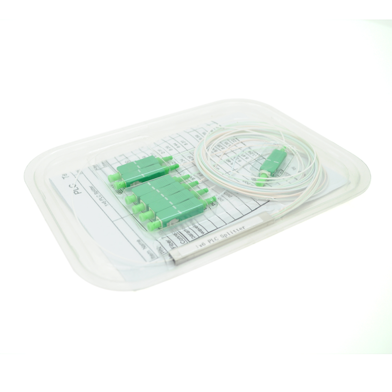 Дільник оптичний Coupler PLC оконцованнимі коннекторами SC / APC з кількістю висновків 8, від кількості висновків залежать розміри корпусу від 60 × 7х4 мм до 80 × 20 × 6 мм. Планарні оптичні сплітери є високопродуктивними, надійними і компактними пристроями для поділу потужності оптичного сигналу, які спеціально розроблені для застосування в мережах FTTH, PON і CATV. Засновані на унікальній хвильової технології іонного обміну в скловолокна. Ці сплітери / розгалужувачі мають дуже низькі вносяться втрати і PDL (поляризационно залежні втрати), відмінну рівномірність каналів і широкий робочий діапазон довжин хвиль.