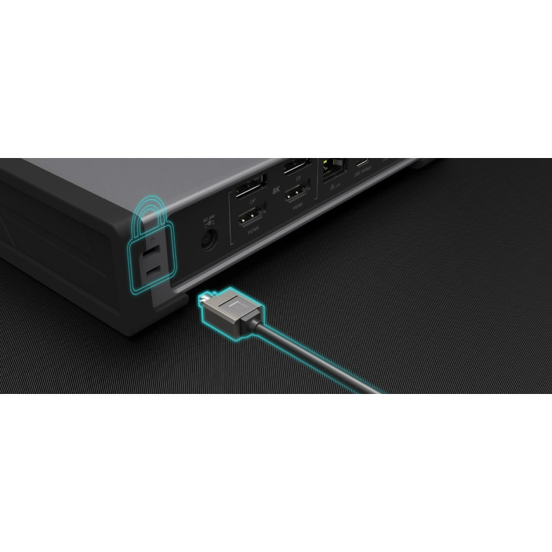 Підтримує потужність до 98 Вт для заряджання ноутбука. Завдяки чотирьом відеовиходам, п’яти портам USB 3.2 і порту USB-C 3.2 ця док-станція ідеально підходить для ноутбуків з Thunderbolt 4, які потребують багато високопродуктивних портів і дисплеїв з високою роздільною здатністю. Ця док-станція Thunderbolt 4 також оснащена портом RJ45 2.5 Gigabit Ethernet, кардрідером SD/microSD 4.0 та комбінованим аудіороз’ємом для максимальної продуктивності.