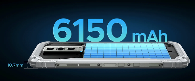 DOOGEE Blade10 Pro Energy, найтонша частина якого складає 10,7 мм, є найтоншим захищеним телефоном і оснащений потужним акумулятором на 6150 мАг. Насолоджуйтесь витонченим, стильним дизайном без шкоди для часу автономної роботи, забезпечуючи заряд і зв'язок протягом усього дня. Відчуйте ідеальне поєднання ультратонкої елегантності та тривалої витривалості.