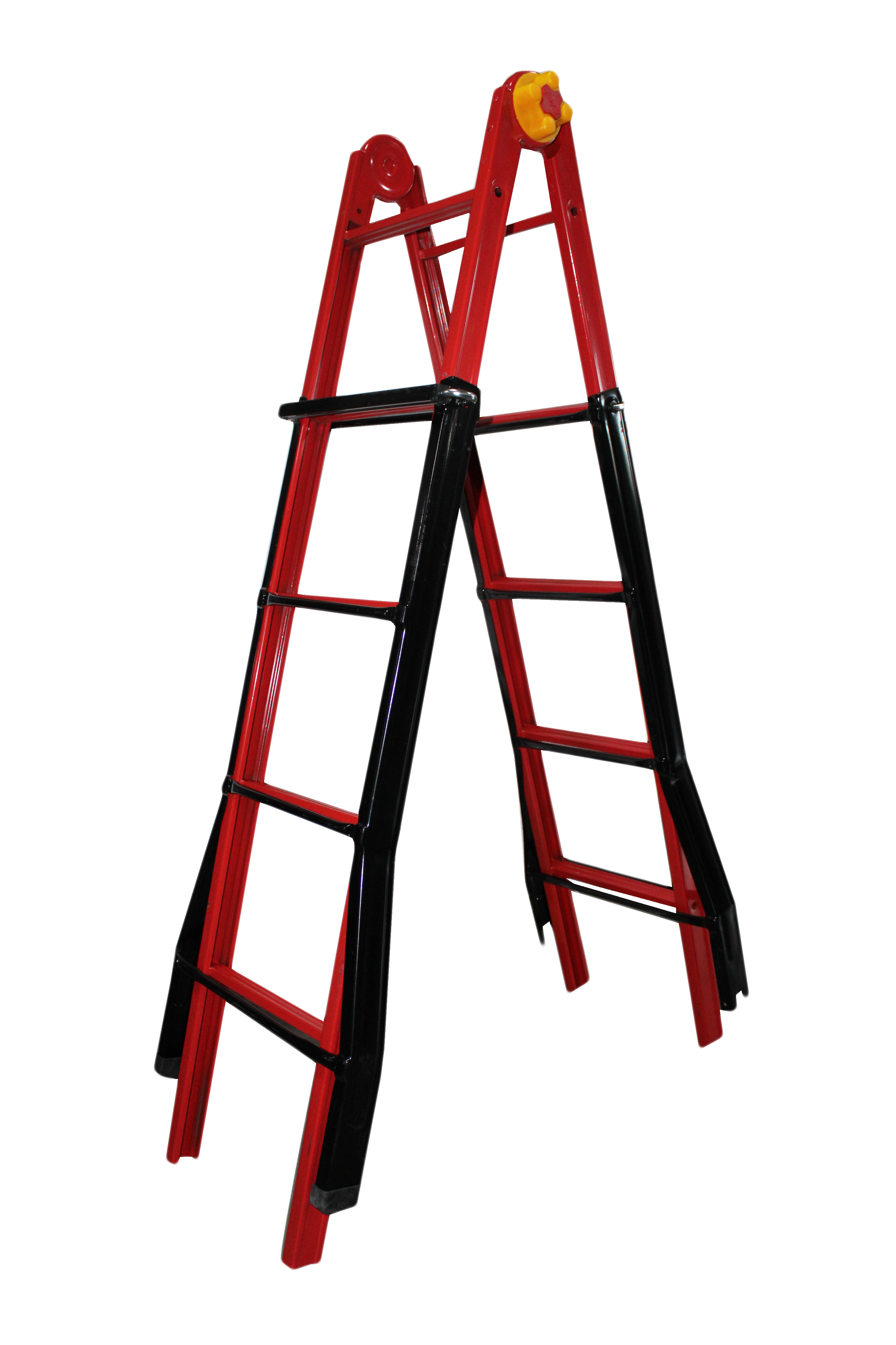 Драбина складається з 4-х секцій: верхні скріплені між собою зубчастим замком; нижні з верхніми спеціальними стопорами, які заходять в отвори у профілі