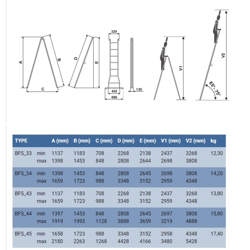 Максимальна робоча висота залежить від зростання користувача і становить близько 3,5 м у режимі драбини та 5,4 м у режимі сходів