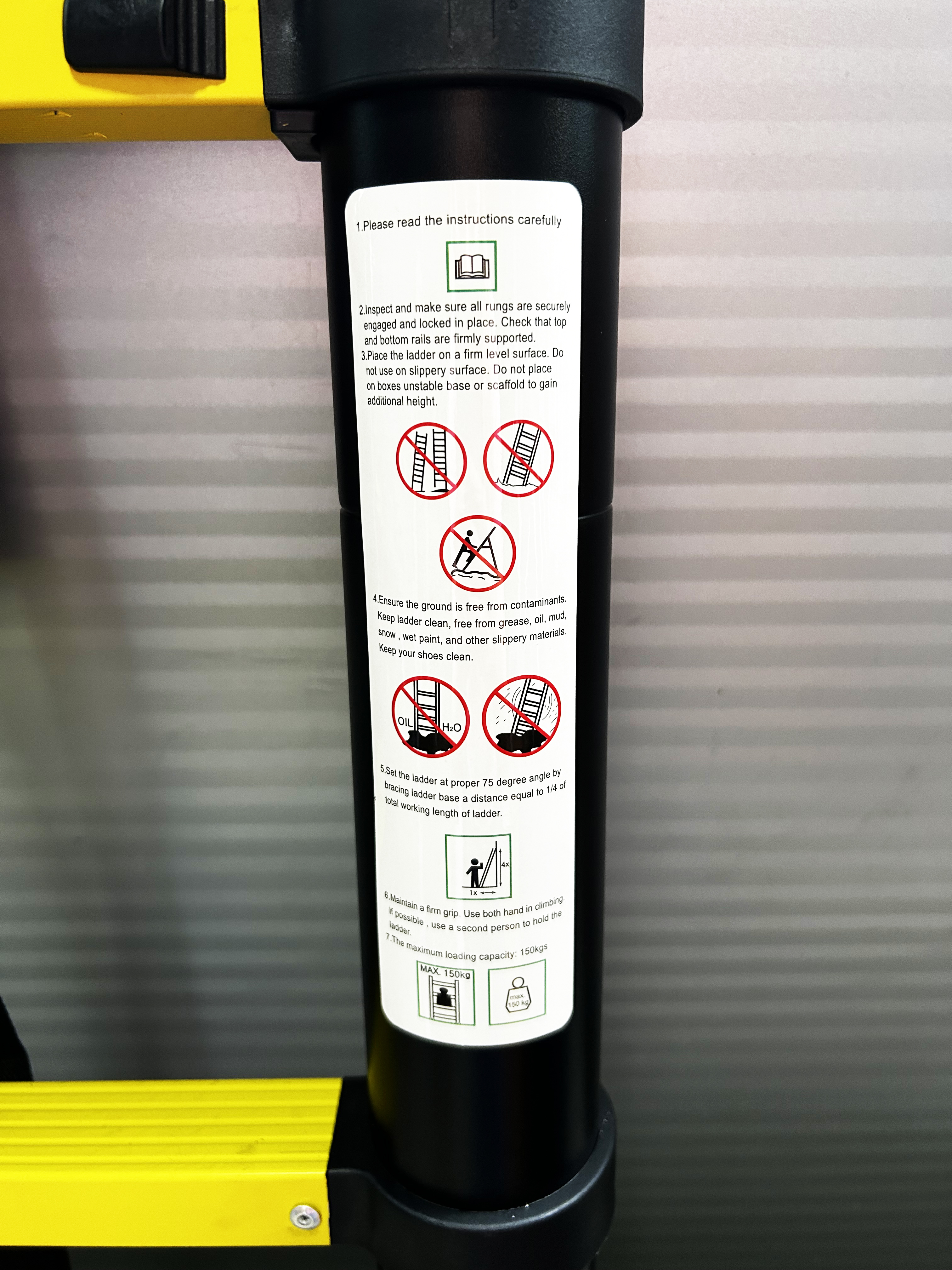 Оптимальний кут нахилу драбини, приставленої до стіни, має бути в діапазоні 65-75 град. відносно підлоги