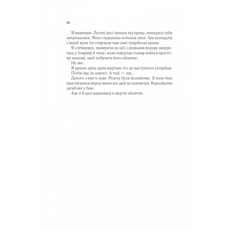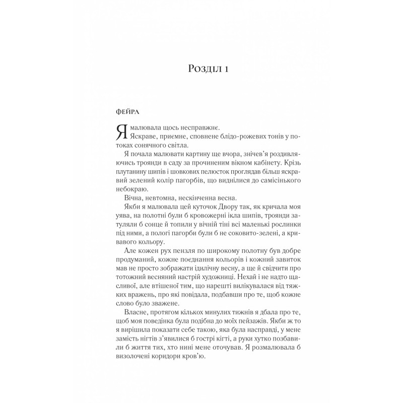 Анотація: Фейра повертається до Двору Весни, рішуче налаштована дізнатись, що замислив Темлін і могутній, зловісний король Гайберну, який загрожує знищити Прифію. Однак, щоб цього досягти, вона спочатку зіграє в смертельно небезпечну гру. Один невірний крок може знищити не лише Фейру, а й увесь її світ. Боротьба з Гайберном у самісінькому розпалі, і силам добра доведеться вступити в союз із темними силами, якщо вони разом хочуть побороти найбільше зло. Дівчина знову має вирішити, кому довіряти, і шукати спільників у найменш очікуваних місцях. Та, здається, зрадники повсюди, і Фейрі не раз доведеться вдаватися до магії й потрапляти в пастки. Адже незабаром дві армії зіткнуться в кривавій, нерівній боротьбі за владу…