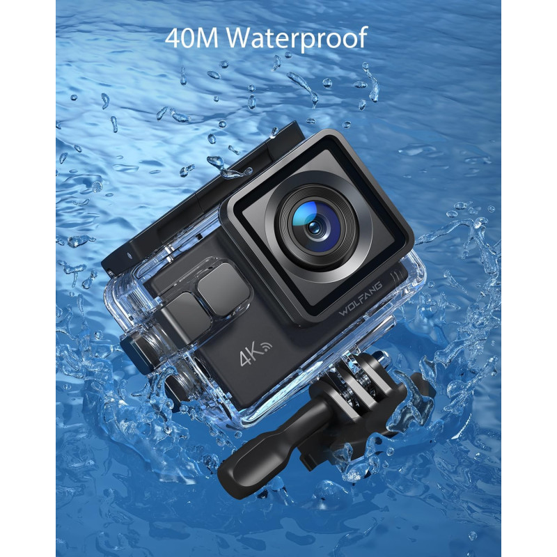 Модель WOLFANG GA100 має міцний корпус з вологозахистом, що робить її ідеальною для зйомок під дощем, у сніг або під водою. В комплекті є спеціальний водонепроникний чохол, завдяки якому камера витримує занурення до 40 метрів.
