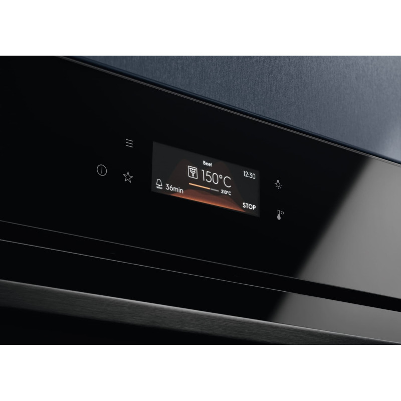 Електричний духовий шафа Electrolux серії 800 MealAssist поєднує традиційне нагрівання та приготування з парою завдяки функції SteamPro. Сенсорний TFT-дисплей EXCite забезпечує зручне керування режимами та налаштуваннями. Функція Assisted Cooking пропонує рекомендовані параметри для різних страв та дозволяє коригувати їх вручну. Система плавного зачинення дверей підвищує комфорт повсякденного використання.