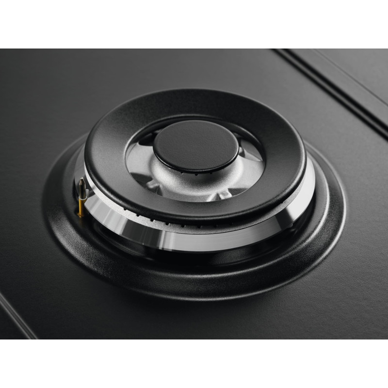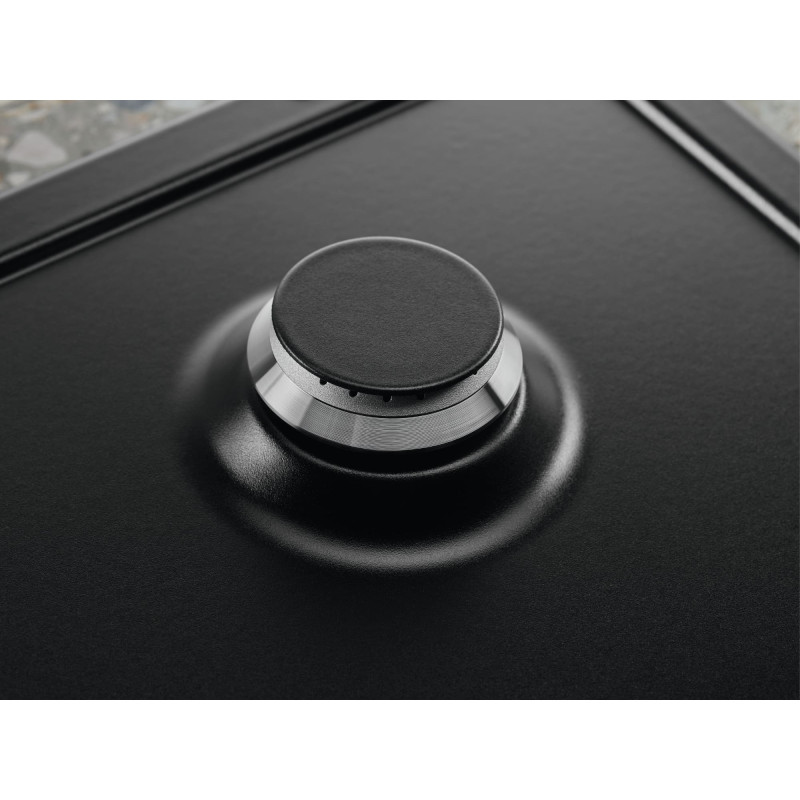 Electrolux KGS6436K — газова варильна поверхня 60 см у чорному кольорі з чавунними ґратками! 4 конфорки (до 4 кВт WOK), електричне підпалювання та газ-контроль — надійний помічник для кулінарії з безпекою та зручністю!