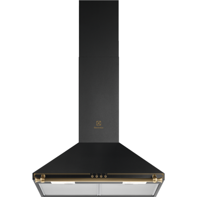 Купольна витяжка Electrolux Rococo шириною 60 см поєднує класичні форми з матовим чорним оформленням. Конструкція трубного типу підтримує стабільне витягування повітря під час готування. Три швидкості роботи формують зручний баланс між продуктивністю та рівнем шуму. Світлодіодне освітлення підкреслює робочу зону плити.