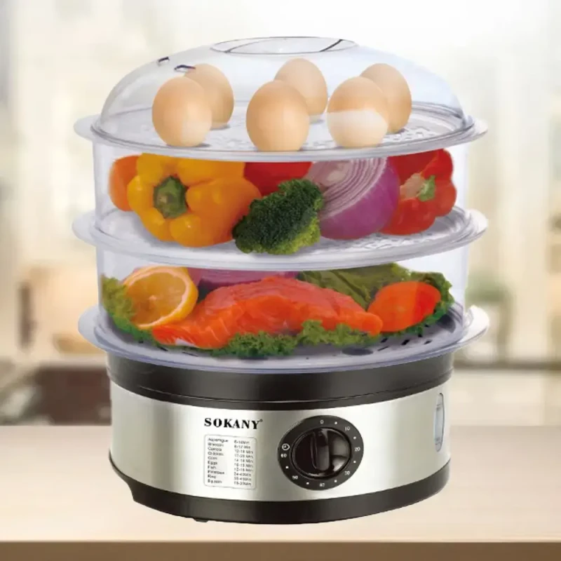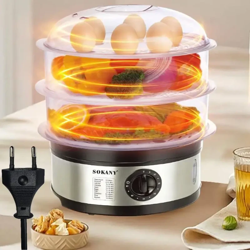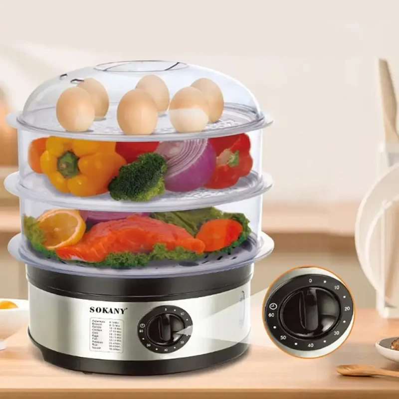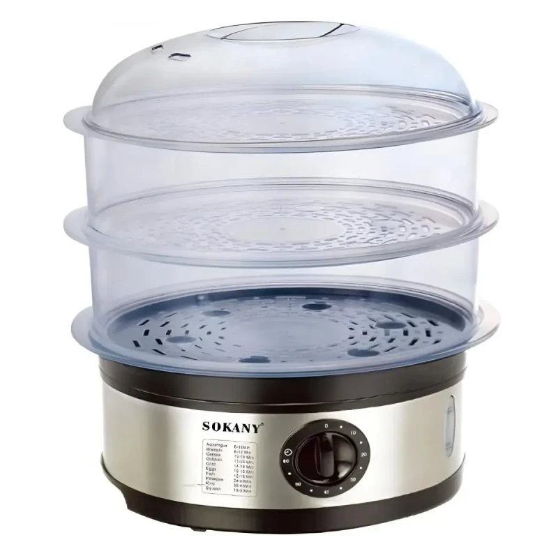Електрична пароварка Sokany SK-07018 – ваш незамінний помічник на кухні для приготування здорової та смачної їжі! Готуйте одночасно кілька страв, зберігаючи всі корисні вітаміни та мікроелементи продуктів.