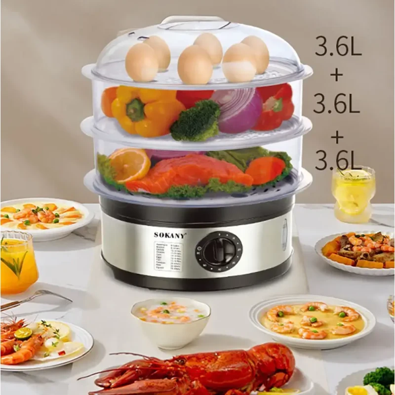 Зручний таймер та функція автоматичного відключення гарантують безпеку та дозволяють займатися іншими справами, не турбуючись про приготування їжі. З об'ємом 11 літрів пароварка Sokany SK-07018 стане незамінним помічником як для повсякденного використання, так і для приготування на великі компанії.