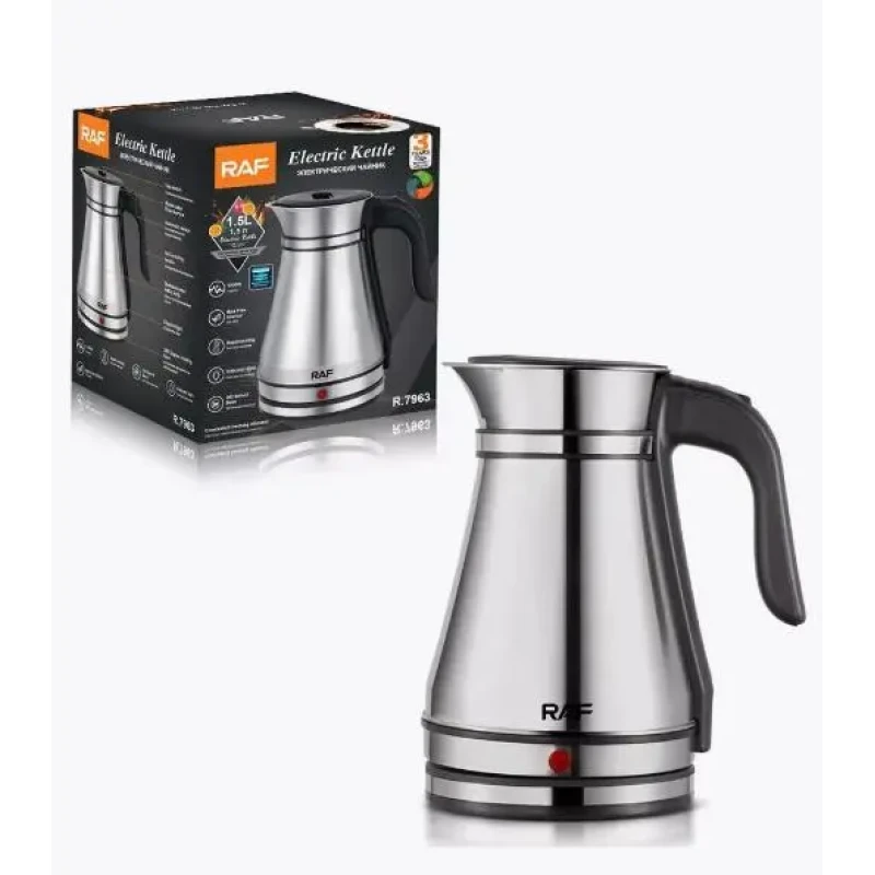 Чайник у вигляді турки 1,5 літра, прихована спіраль, зручна ручка, корпус нержавіюча сталь, автоматичне відключення, основа, що обертається, 1500 вт, швидке кип'ятіння