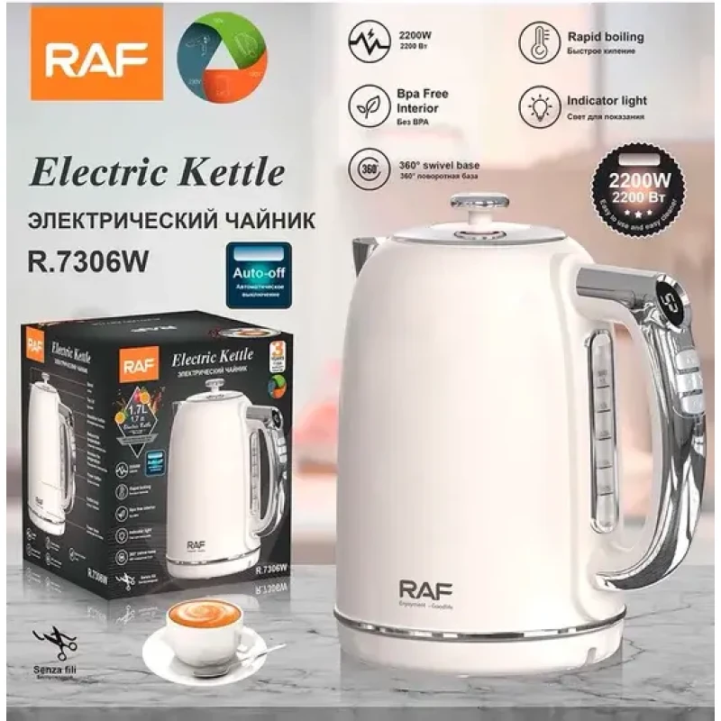 ⚠️ Бренд RAF відомий своєю якістю та надійністю. Продукція компанії користується популярністю на ринку завдяки високому рівню безпеки та довговічності. Чайник R.7306 отримав позитивні відгуки від користувачів за свою простоту та ефективність у використанні.