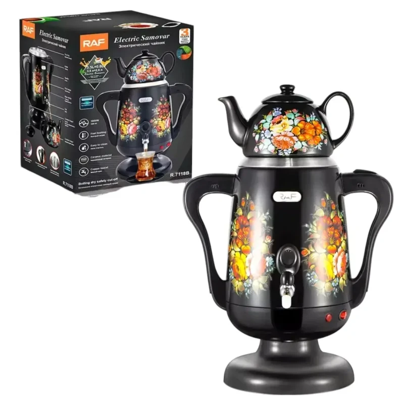 Велика ємність: основа з нержавіючої сталі об'ємом 3,5 л + фарфоровий чайник об'ємом 0,6 л, що відповідає щоденним та святковим потребам.