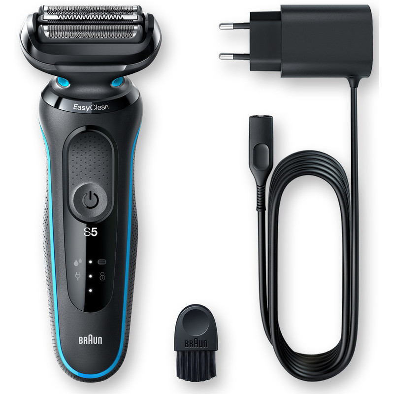 Braun Series 5 51-M1000s комплектується мережевим адаптером, щіточкою для чищення та захисним ковпачком. Автоматичне налаштування напруги (100–240 В) робить її зручною для подорожей. Стильний блакитний колір, простота експлуатації та високі технології роблять електробритву відмінним вибором для щоденного догляду за собою.