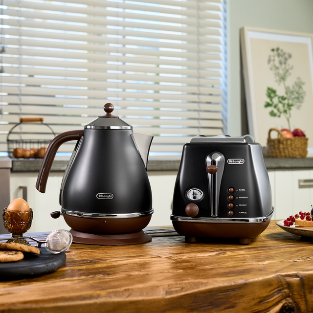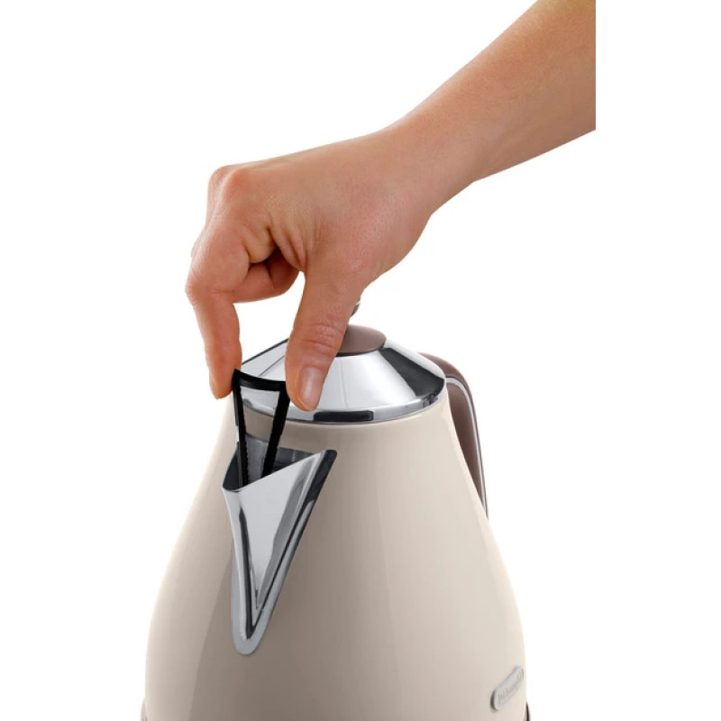 Чайник De'Longhi Icona Vintage KBOV2001.BK поєднує в собі ретро-стиль, італійський дизайн і класичну елегантність. Має унікальне глянцеве покриття з нержавіючої сталі та хромовані сталеві деталі в стилі ретро. Серія сніданків De'Longhi Icona Vintage - справжній ідеал італійського дизайну.