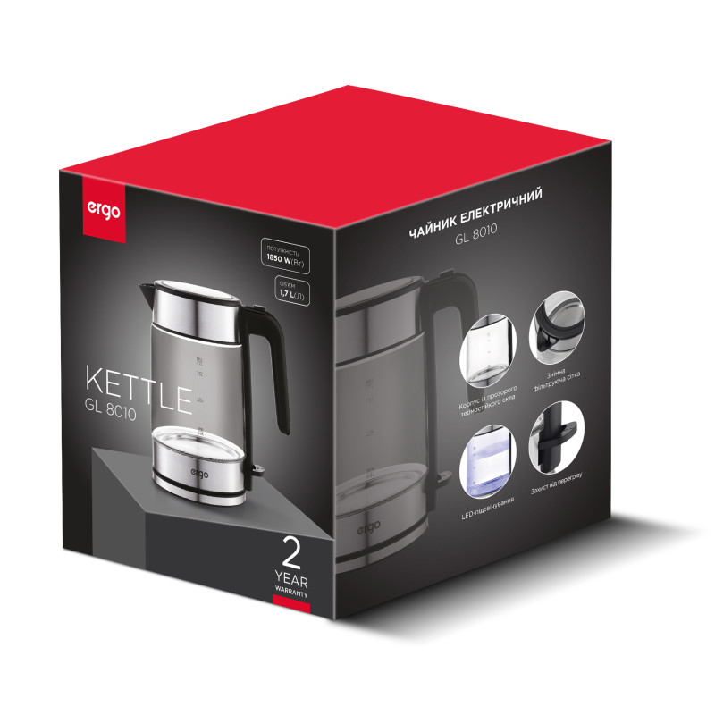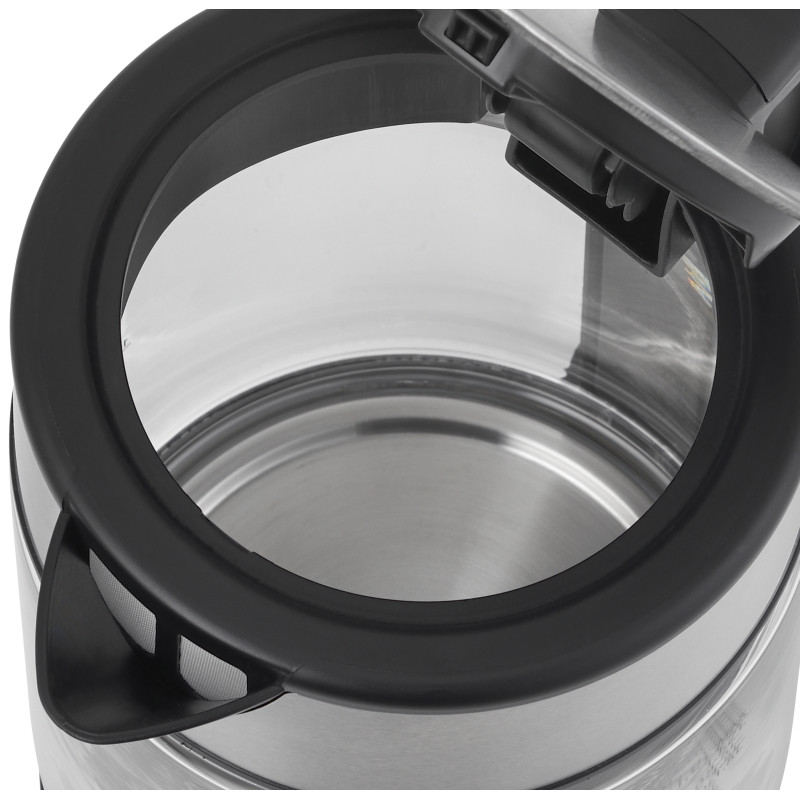 Скляний корпус чайника в поєднанні з нержавіючою сталлю – вибір користувачів, які цінують екологічні та безпечні матеріали виготовлення кухонних приладів. Класичний вигляд і стримані кольори в дизайні дозволяють вписати цей чайник у будь-який кухонний інтер'єр.