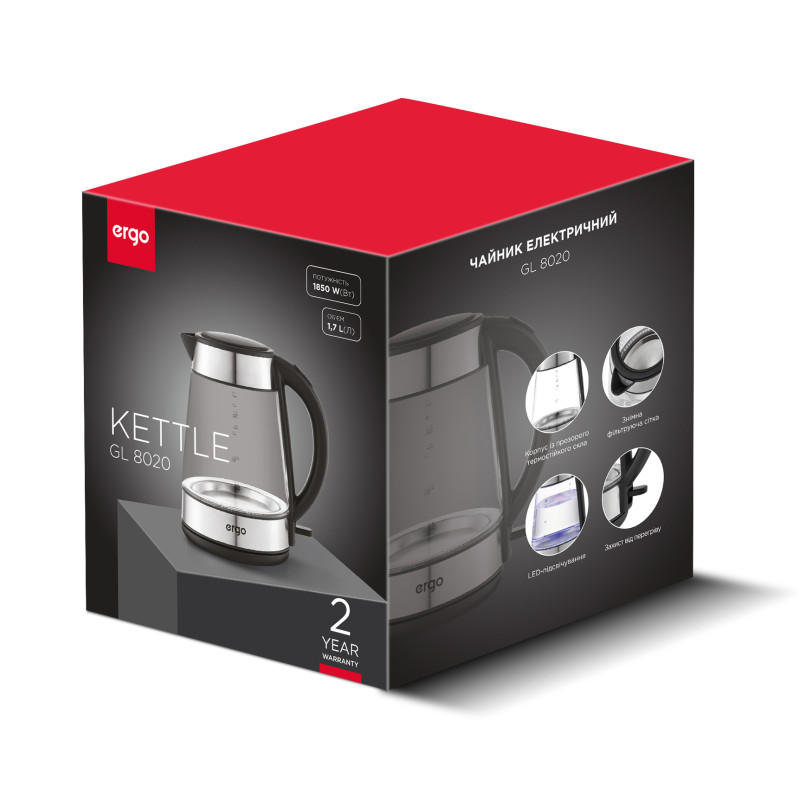 Міцний та екологічний скляний корпус цього чайника естетичний на вигляд та простий у догляді. Прозорий корпус дозволяє візуально контролювати процес закипання води, а світлодіодне підсвічування робить це приємнішим.