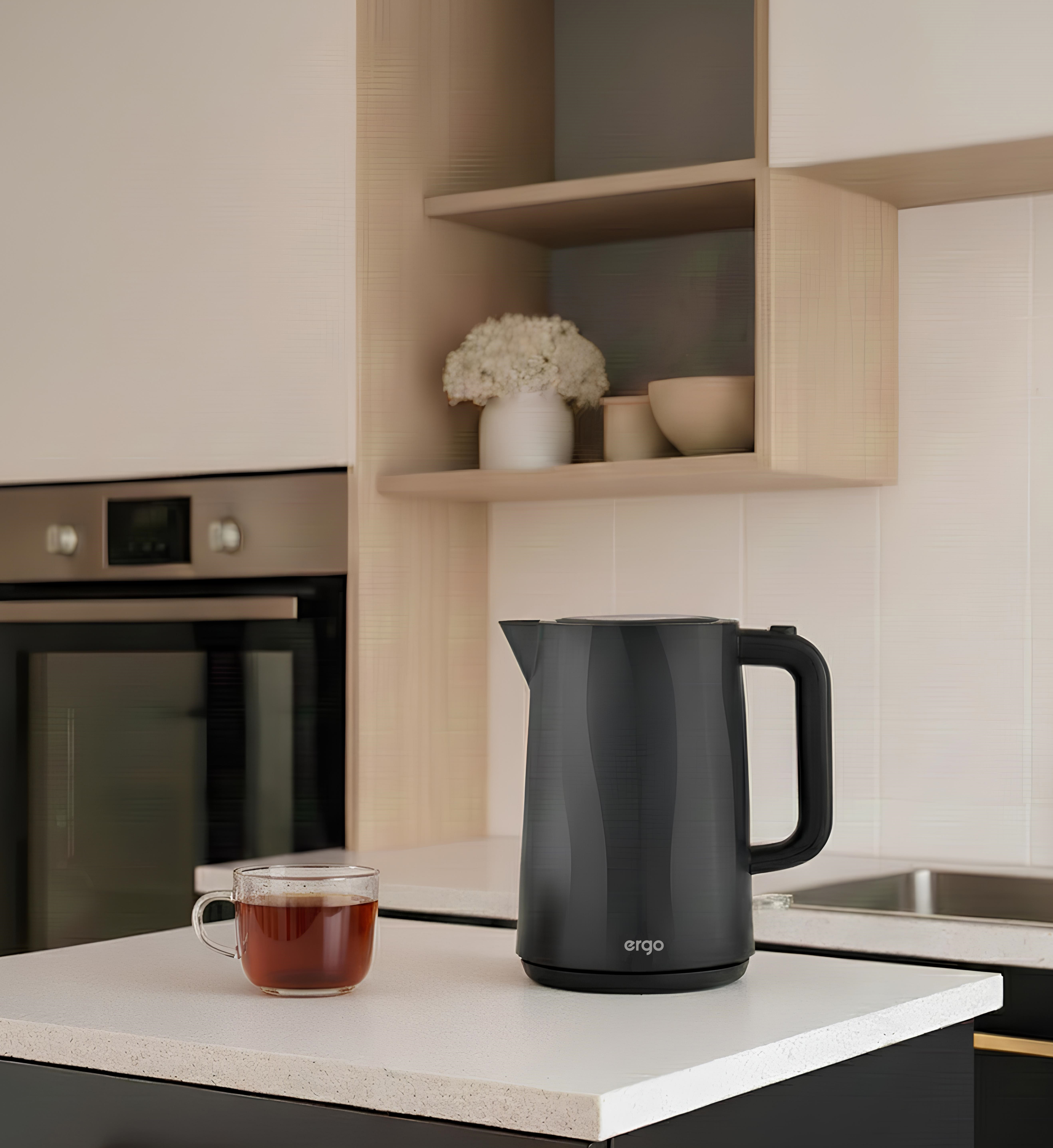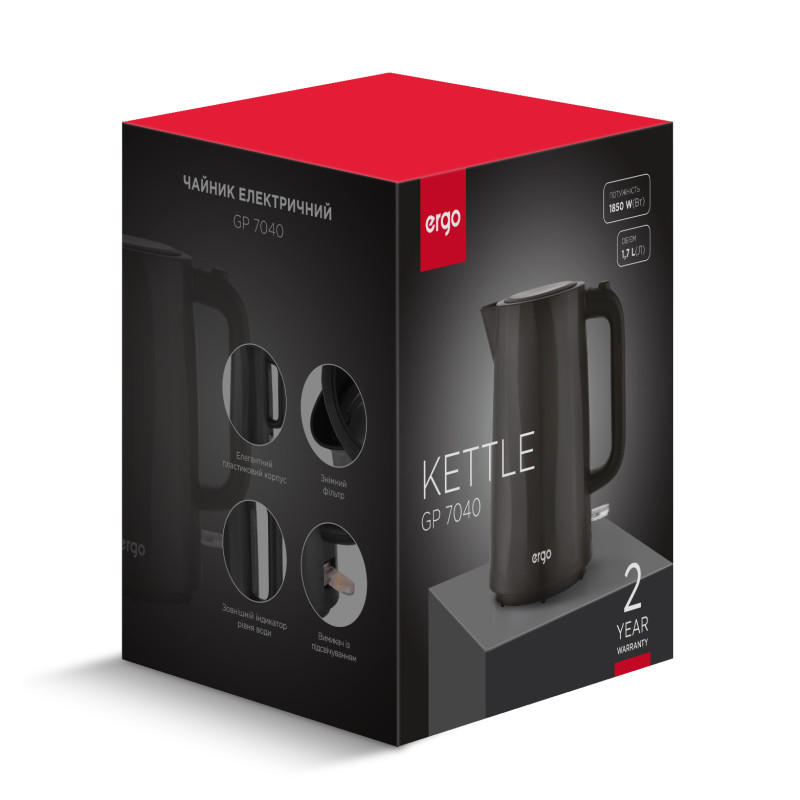 ERGO GP-7040 – це стильний електрочайник із фактурним корпусом із чорного матового пластику, який прикрасить будь-яку кухню.