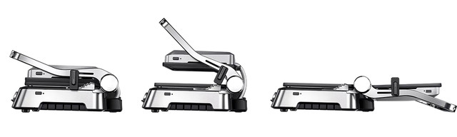 Крім того, контактне положення обережно притискає їжу між пластинами, щоб мінімізувати час приготування. Використовуйте відкрите положення, і ви отримаєте дві великі пластини для приготування двох різних страв одночасно.