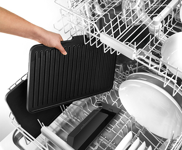 Знімні пластини та піддон для жиру ви зможете мити в посудомийній машині разом з іншим кухонним приладдям та посудом.