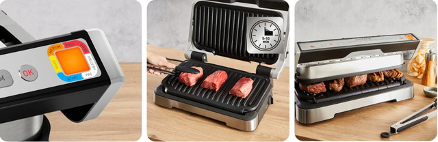 Розумний гриль та режим Барбекю. Автоматичне вимірювання порції і товщини. Новий дизайн індикатору рівня приготування.