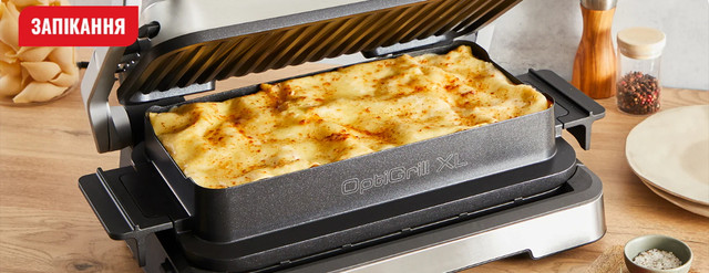 Використовуйте форму для запікання, щоб перетворити OptiGrill у міні духовку. Приготуйте улюблені страви навіть швидше ніж у духовці: піцу, гратен, випічку та навіть картоплю фрі!