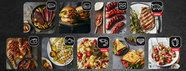 Червоне м'ясо, Бургер, Птиця, Сендвіч, Ковбаса, Риба, а також нові режими - Свинина, Перець, Морепродукти.