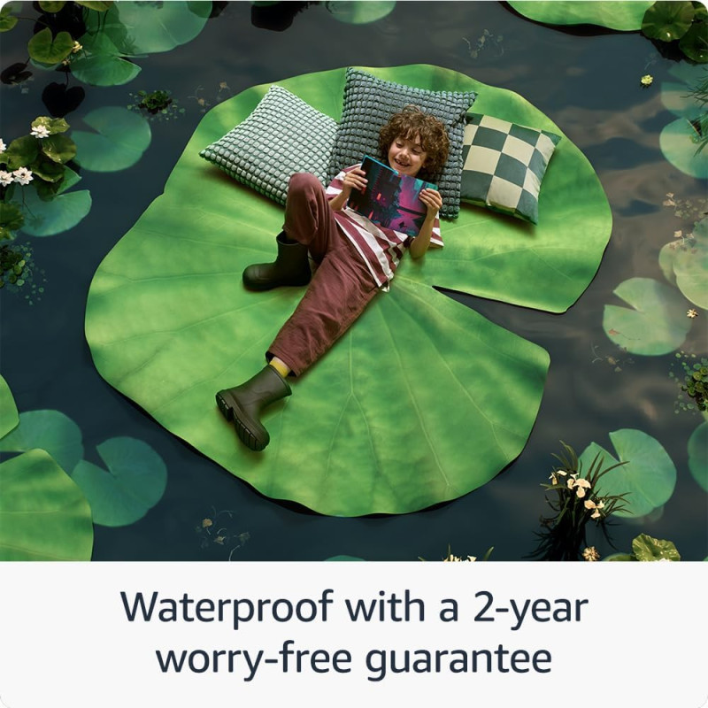Ще одна важлива особливість Kindle Paperwhite Kids – це водонепроникність. Пристрій не боїться ні випадково розлитого соку, ні несподіваного дощу, ні падіння у воду. Тому воно стане надійним супутником у поїздках, на природі, у школі чи просто вдома. Надійність конструкції дозволяє не хвилюватися за збереження улюблених книг у будь-яких умовах.