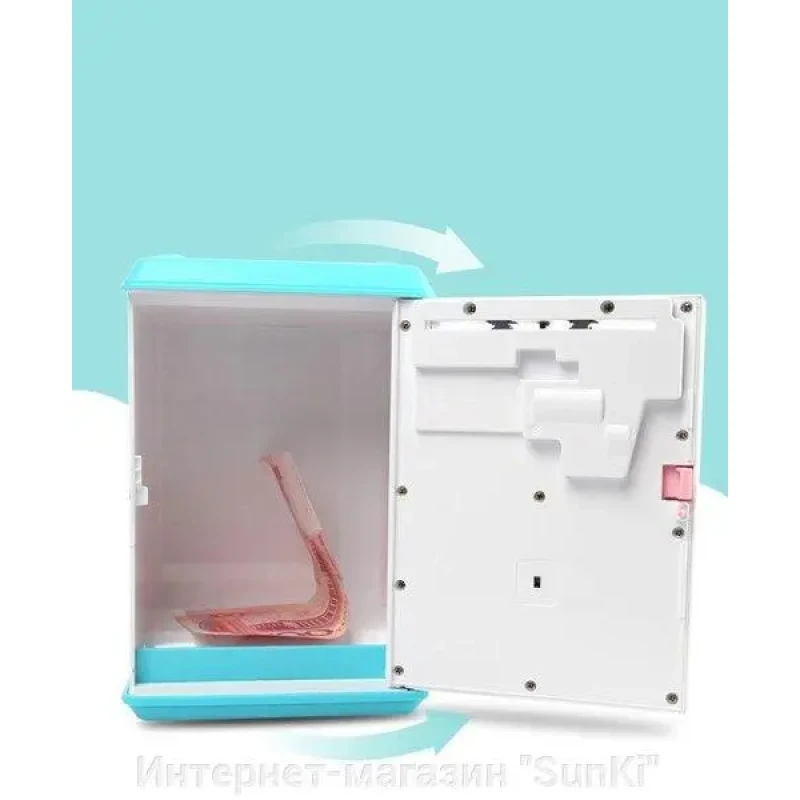 Ця скарбничка-сейф оснащена спеціальним механізмом, який спрацьовує при піднесенні купюри до купюроприймача і затягує її всередину, поміщаючи в основне відділення скарбнички. У верхній частині є проріз для монет, які збираються у спеціальний лоток та не змішуються з купюрами.