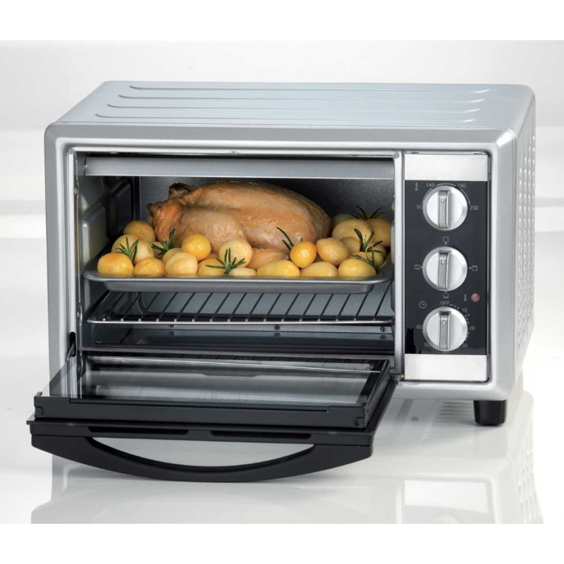 Електропіч оснащена піддоном для крихт, який потрібно час від часу спорожняти, дверцятами з подвійним склом, зручними регуляторами температури. Аксесуари, які ви придбаєте, обравши цю модель: решітка для запікання, деко, ручка, за допомогою якої зручно витягувати деко з печі. Хочете готувати швидко і смачно? Така електропіч - те, що вам потрібно!