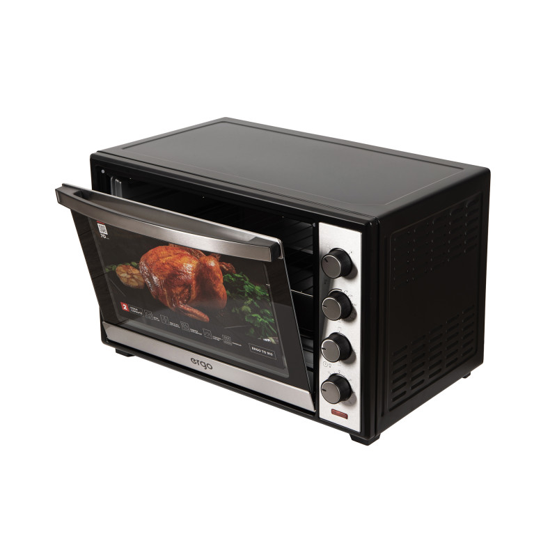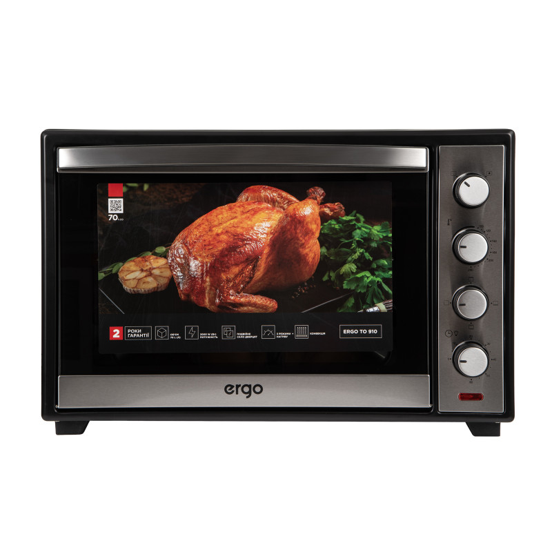 Модель ERGO TO 910 – це повноцінна електрична піч, яка має всі переваги стаціонарної духовки, але разом із тим дає змогу використовувати її в тому місці і в той час, де і коли це потрібно, наприклад, влітку на дачі. Дана піч має великий корисний об’єм 70 літрів, якого вистачить для одночасного приготування великої кількості продуктів. Ця модель оснащується чотирма ТЕНами сумарною потужністю 2000 Вт, які розігрівають камеру печі до 250 градусів.