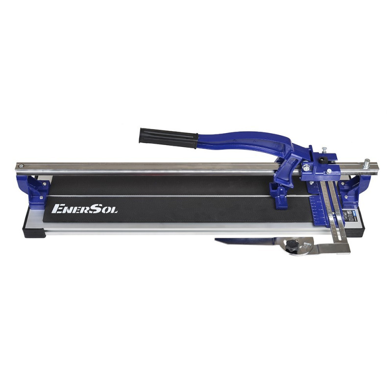 Ручний плиткоріз EnerSol ETC-600PRO з алюмінієвим корпусом дозволяє різати плитку завдовжки до 600 мм та завтовшки до 16 мм. Підшипниковий механізм забезпечує плавний хід ріжучого елемента, а калібрувальні винти допомагають досягти точності. Компактність та вага 6,3 кг полегшують транспортування інструменту на об'єкти без електроживлення.