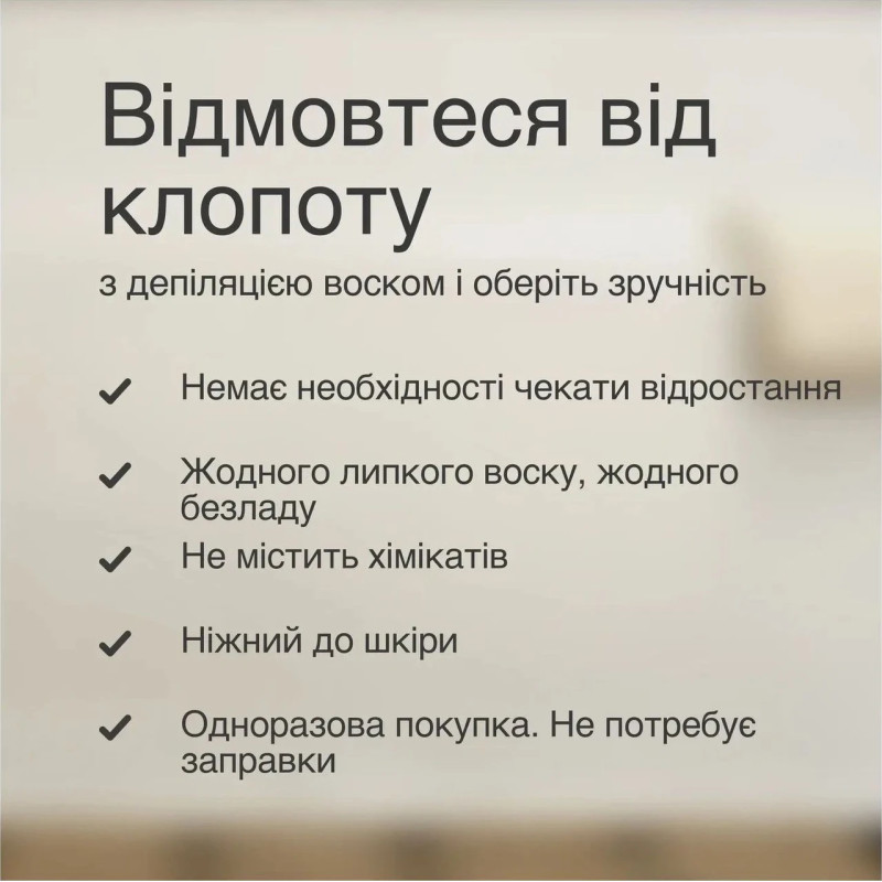 Обережно епілюйте у ванні або під душем, щоб зменшити відчуття болю. Комфортна епіляція з масажною насадкою.