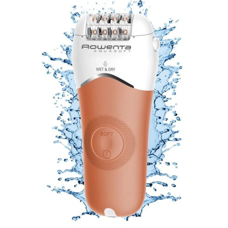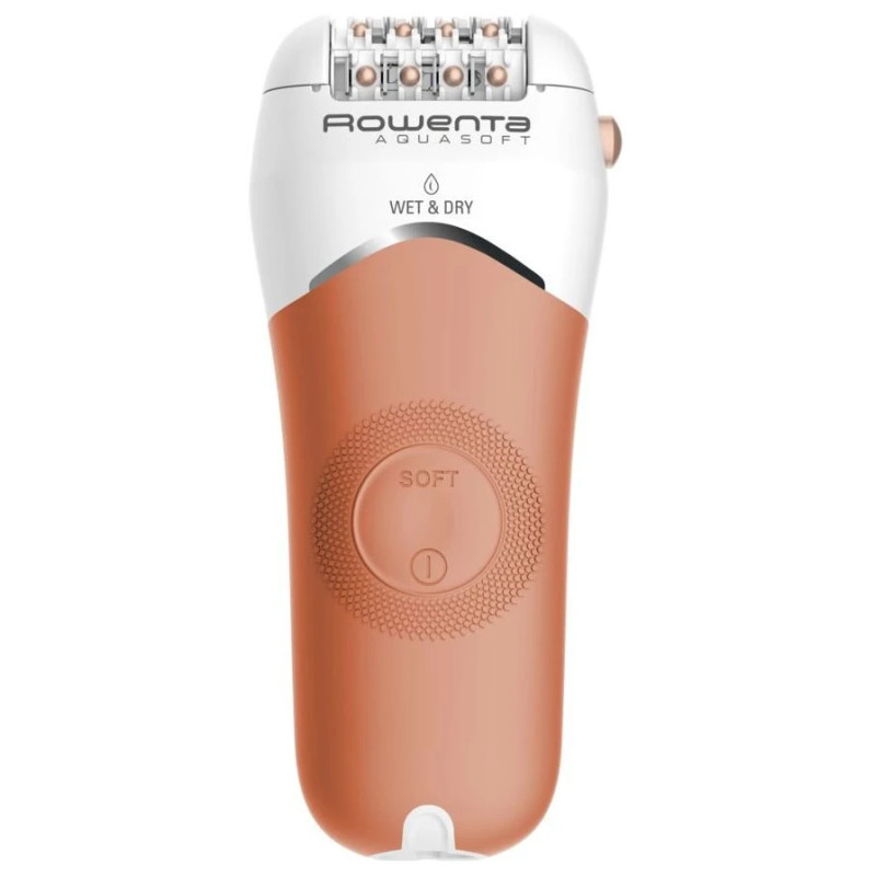 Епілятор Rowenta Aquasoft Wet & Dry EP4930 - це універсальний засіб по догляду за шкірою, який подарує чудову гладкість та ніжність. Завдяки повністю водонепроникному корпусу, апарат відмінно підходить як для сухої, так і для вологої епіляції. При цьому унікальний запатентований матеріал насадок забезпечить плавне ковзання і не викличе подразнень. Що стосується очищення, то досить просто скористатися невеликою щіточкою, яка йде в комплекті.