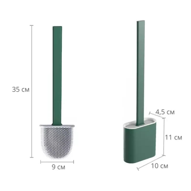 Гнучка і зручна. Плоска силіконова головка щітки виготовлена з м'якого силікону, її можна зігнути, щоб вона ідеально відповідала кутку обода. Плоска та загострена головка щітки призначена для кращого очищення всіх кутів унітазу за рахунок вигину головки щітки під різними кутами.