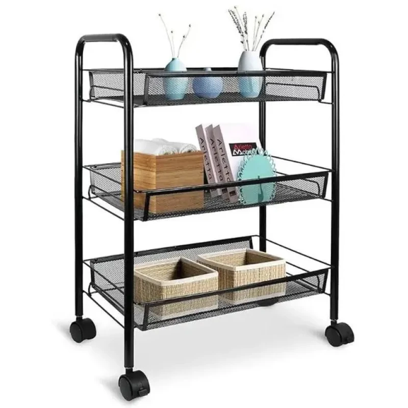 ПРОСТОТА ВИКОРИСТАННЯ: Обладнаний чотирма колесами, що вільно обертаються на 360°, легко переміщається по гладкій підлозі. Ви можете штовхати його, куди хочете. Просто зафіксуйте колесо, щоб надійно зафіксувати полицю у зручному місці.