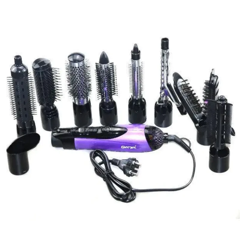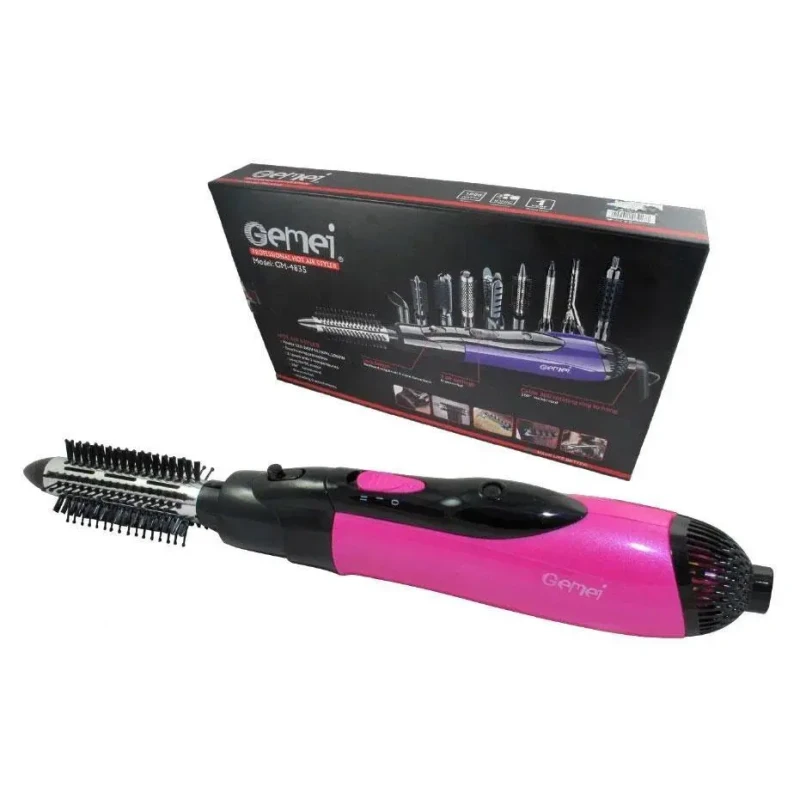 Перше враження про людину складається з її зовнішності, тому дуже важливо завжди добре виглядати. Особливу роль тут відіграє зачіска, адже волосся привертає основну увагу. Саме від фена залежить, наскільки вдалою вийде зачіска. Він не тільки сушить волосся, а й допомагає зафіксувати пасмо в потрібному місці та напрямку. Повітряний стайлер для волосся Gemei GM 4835 10 в 1 - чудовий прилад для укладання волосся, за допомогою якого ви зможете робити різноманітні зачіски і завжди виглядати приголомшливо. Зовні він схожий на плойку і має 9 насадок: концентратор, насадка для об'єму, гребінець для випрямлення, щипці для завивки, прасок, конусна насадка і три круглі гребінці.