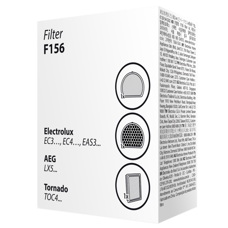 Набір фільтрів для пилососів F156 для пилососів Electrolux. Фільтрація HEPA - дуже важлива і дуже популярна технологія очищення повітря. Високоефективний фільтр забезпечує відмінну фільтрацію повітря та затримує мікроскопічних паразитів, які можуть викликати респіраторні алергії та інші захворювання.