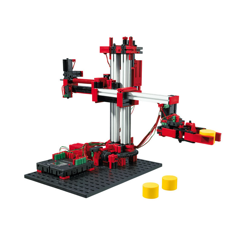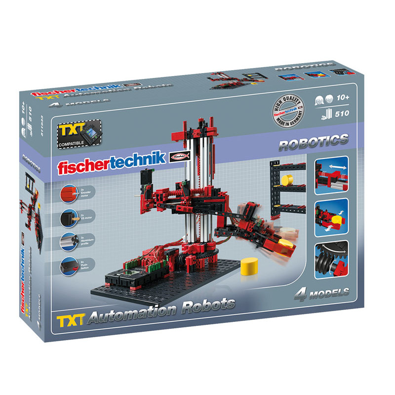 Чотири реалістичних повністю функціональних промислових робота: робот для складу, трьох-осьовий маніпулятор і два роботи з захватними пристроями. У цьому конструкторі використовується алюмінієвий профіль для збільшення міцності конструкцій моделей, що збираються. Дидактичний матеріал містить докладний опис моделей, принципів роботи, а також навчальні завдання і приклади їх вирішення. Включає CD з прикладами програм, методичний посібник, 2 мотори з енкодерами, 2 мотора розміру XS, перемикачі, лампочки і 400 компонентів для збірки.