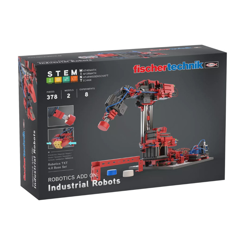 Набір-розширення для практичного вивчення промислової робототехніки: складання та програмування 2 моделей шестивісних роботів (8 експериментів, 378 деталей), розвиток інженерних та командних навичок. Потрібен базовий комплект Robotics TXT 4.0 Base Set (FT-559888).