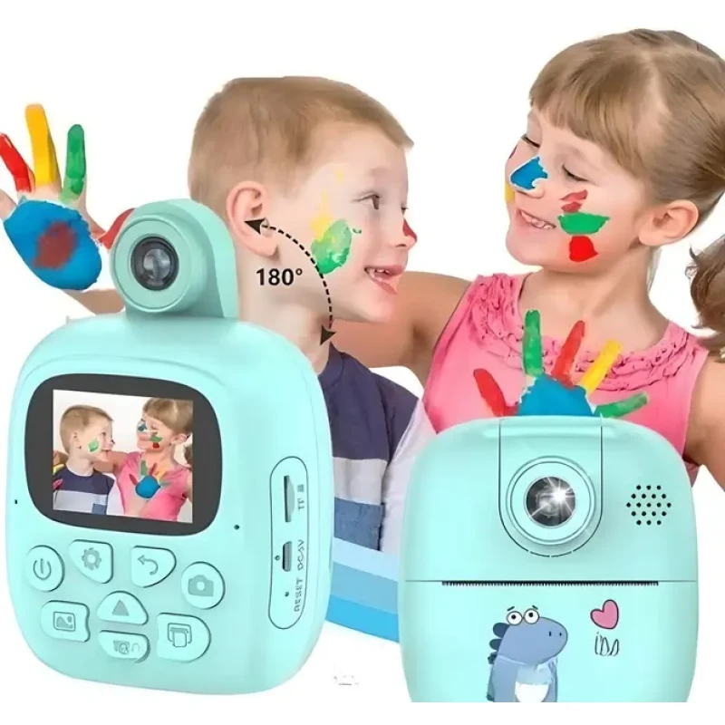Дві камери – основна та селфі-камера дозволяють малюкам вибирати ракурси та створювати унікальні кадри. З моментальним друком на термопапері фотографії виходять прямо з фотоапарата, створюючи почуття захоплення, аналогічне тому, як чеки роздруковуються на касі в супермаркеті!