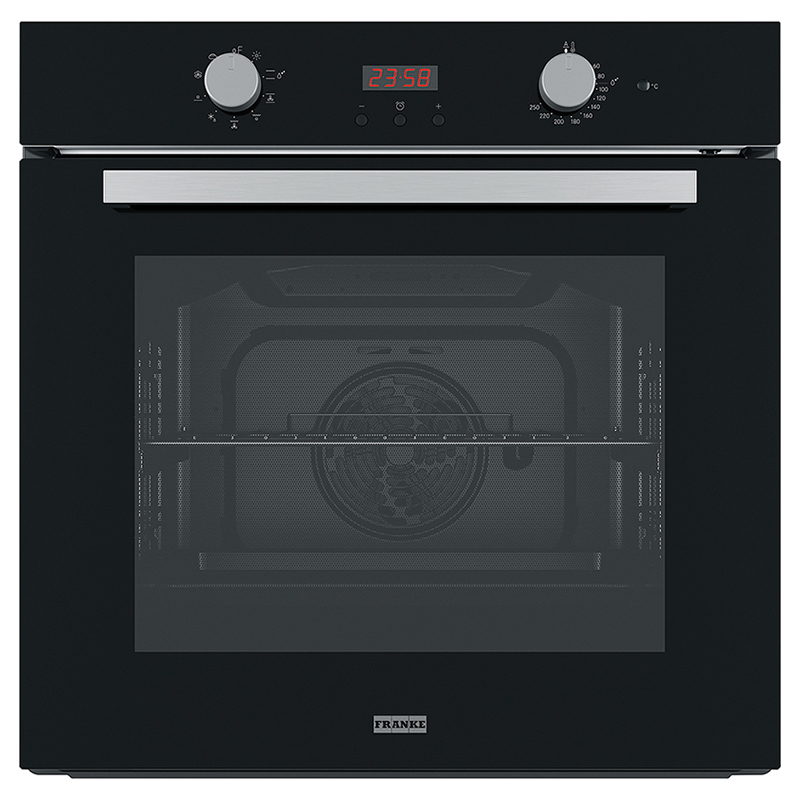 Franke — електричний духовий шафа об'ємом 71 л у стильному чорному виконанні з дисплеєм та електронним таймером. Підтримує 8 основних режимів, включаючи гаряче повітря, випікання з конвекцією, турбо-гриль, хліб та розморожування. Гідролітичне очищення парою значно полегшує догляд, клас енергоефективності А. Дверцята з двома стеклами та поворотні ручки з нержавіючої сталі.