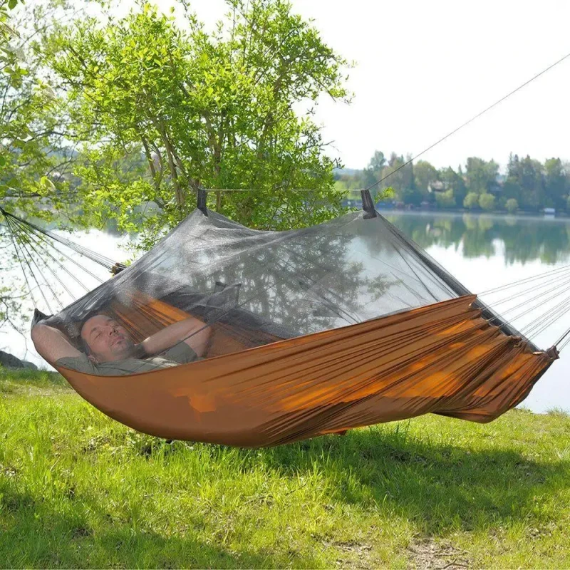 Гамак із москітною сіткою – це ідеальне рішення для комфортного відпочинку на свіжому повітрі. Завдяки продуманому дизайну та високоякісним матеріалам, цей гамак забезпечить вам спокійне та розслаблююче проведення часу, захищаючи від комах та створюючи затишну атмосферу. Гамак підходить для використання в різних умовах, будь то походи, кемпінг, пляжний відпочинок чи сад.