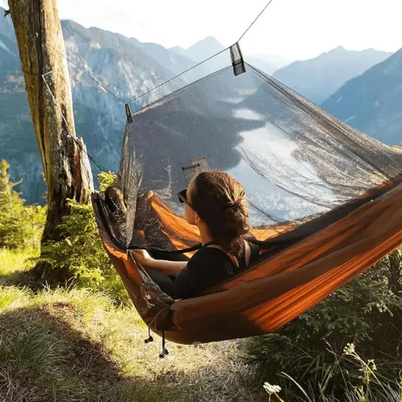 Гамак з москітною сіткою, гамак похідний, туристичні гамаки, гамак підвісний тканинний