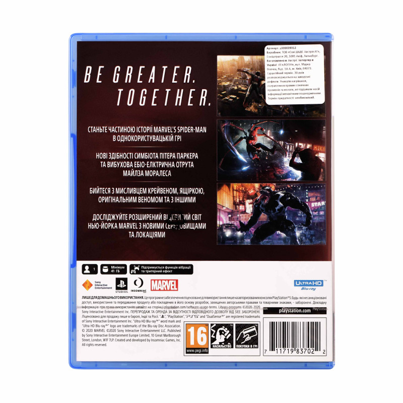 Дата релізу: 20 жовтня 29023 року. Люди-павуки, Пітер Паркер і Майлз Моралес повертаються для нової захоплюючої пригоди у серії Marvel про Людину-павука, яка отримала визнання критиків. Розгойдуйтесь, стрибайте та використовуйте нові Web Wings, щоб подорожувати Нью-Йорком від Marvel, швидко перемикаючись між Пітером Паркером і Майлзом Моралесом, щоб пережити різні історії та випробувати нові епічні вміння, адже культовий лиходій Веном загрожує знищити їхні життя, їхнє місто та тих, кого вони люблять
