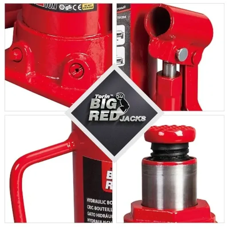 Гідравлічний домкрат пляшковий на 10т, Червоний / Домкрат для автомобілів та вантажівок / Сталевий домкрат